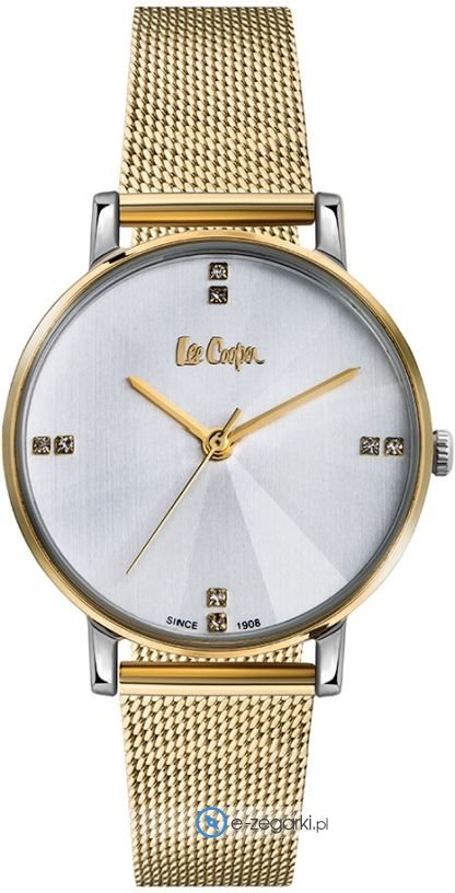 Zegarek damski LC06945.230 marki Lee Cooper to stylowe połączenie funkcjonalności a także ciekawego designu. Cyferblat zegarka jest w kolorze srebrnym. Zegarek ten pokazuje godzinę w formacie analogowym dzięki temu odczyt jest intuicyjny. Koperta została pokryta kolorem srebrno złotym szeroka jest na 35 mm - w kształcie okrągłym.