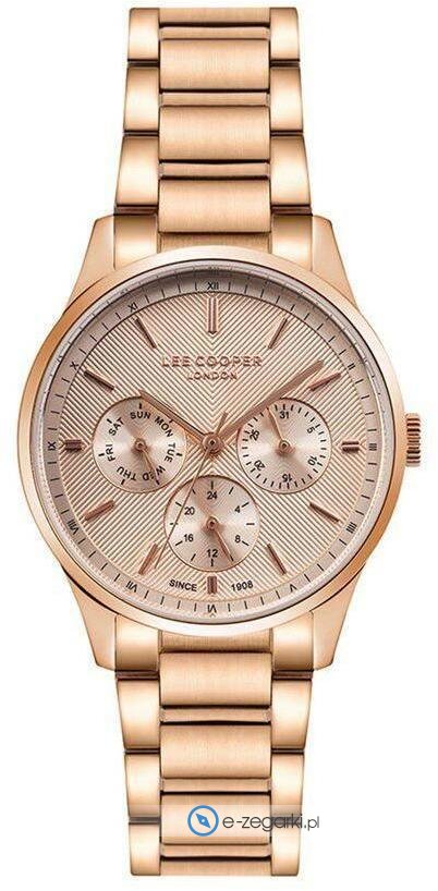 Zegarek damski LC07024.410 marki Lee Cooper to dobre połączenie funkcjonalności i modnego designu. Charakteru nadaje wysokiej klasy cyferblat w kolorze różowo złotym. Zegarek ten pokazuje godzinę w formacie analogowym dzięki czemu odczyt jest bardzo łatwy. Koperta szeroka jest na 35 mm - w kształcie okrągłym.