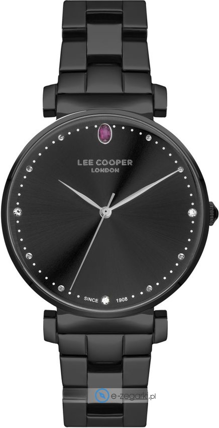 Model LC07028.650 marki Lee Cooper to stylowy zegarek naręczny damski, który jest wyposażony w pomysłowe rozwiązania oraz funkcje. Wysokiej jakości tarczę zegarka pokryto czarnym kolorem. Aktualna godzina pokazywana jest w sposób analogowy co intuicyjnie pozwala ją odczytać. Koperta została ozdobiona kolorem czarnym szeroka jest na 38 mm - posiada okrągły kształt.