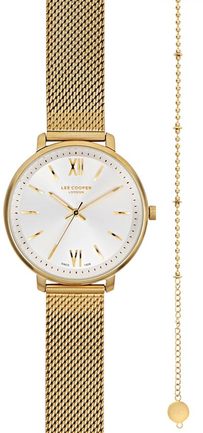 Zegarek damski LC07032.130 marki Lee Cooper to ciekawa propozycja dla osób ceniących sobie dbałość o detale oraz bezawaryjne funkcjonowanie mechanizmów. Nieschematyczny wygląd zegarka uzyskano m.in. poprzez cyferblat w kolorze złotym. Godzina pokazywana jest w sposób analogowy co intuicyjnie pozwala ją odczytać. Koperta jest w kolorze złotym szeroka jest na 34 mm - cechuje się okrągłym kształtem.