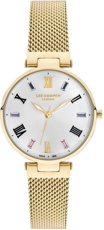Zegarek damski LC07033.130 marki Lee Cooper to ciekawa pozycja dla osób ceniących sobie dbałość o szczegóły jak również bezawaryjne zachowanie mechanizmów. Tarcza zegarka jest w kolorze srebrnym. Zegarek ten prezentuje godzinę w formacie analogowym dzięki temu odczyt jest bezproblemowy. Koperta jest w kolorze złotym szeroka jest na 34 mm - posiada okrągły kształt.