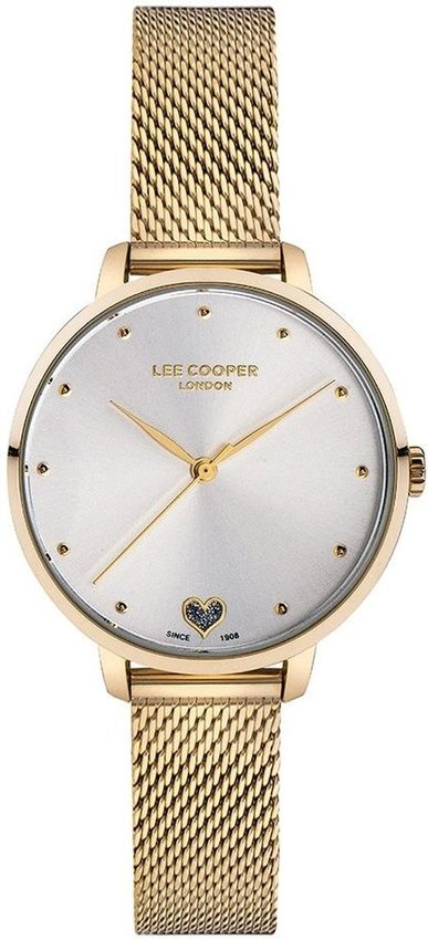 Model LC07039.130 marki Lee Cooper to stylowy zegarek naręczny damski, który jest wyposażony w ciekawe rozwiązania i funkcje. Nieschematyczny wygląd zegarka osiągnięto także dzięki tarczy w kolorze srebrnym. Pokazana metodą analogową bieżąca godzina jest czytelna i prosta do sprawdzenia. Koperta jest pokryta kolorem złotym szeroka jest na 34 mm - ma okrągły kształt.