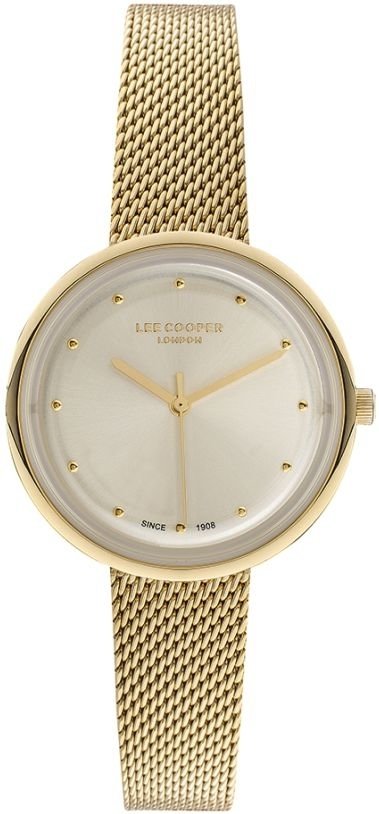 Damski zegarek Lee Cooper LC07057.110 to zegarek, który dzięki swemu wzornictwu zawsze będzie prezentował się dobrze. Styl zapewnia wysokiej klasy cyferblat w kolorze złotym. Pokazana metodą analogową bieżąca godzina jest czytelna i prosta do odczytania. Koperta jest w kolorze złotym szeroka jest na 34 mm - charakteryzuje się okrągłym kształtem.