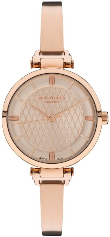 Zegarek damski LC07064.410 marki Lee Cooper to idealne połączenie funkcjonalności a także ciekawego designu. Charakter zapewnia wysokiej jakości tarcza w kolorze różowo złotym. Pokazana metodą analogową bieżąca godzina jest czytelna i łatwa do sprawdzenia. Koperta szeroka jest na 34 mm - charakteryzuje się okrągłym kształtem.