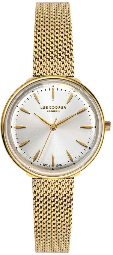 Model LC07087.130 marki Lee Cooper to stylowy zegarek naręczny damski, który posiada ciekawe rozwiązania oraz funkcje. Ciekawy wygląd zegarka uzyskano także dzięki tarczy w kolorze srebrnym. Zaprezentowana metodą analogową bieżąca godzina jest czytelna i szybka do odczytania. Koperta jest w kolorze złotym szeroka jest na 34 mm - w kształcie okrągłym.