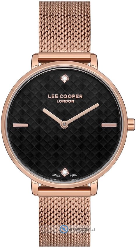 Lee Cooper to marka, która powstała w Londynie w 1908 roku. Jest najstarszym europejskim brandem zajmującym się wytwarzaniem popularnej odzieży jeansowej. Dzisiaj brand ten dostępny jest praktycznie na wszystkich kontynentach w przeszło 5000 sklepów. Do kompletu oprócz odzieży brakowało tylko zegarków, stąd właśnie decyzja o powiększeniu asortymentu i produkcji zegarków Lee Cooper. Zegarki Lee Cooper tak jak reszta produktów marki oferują niezwykle wysoką jakość wykonania w przystępnej cenie. Zegarki cechują się dopracowanymi detalami oraz precyzyjnym wykończeniem. Sprzedawane w naszym sklepie zegarki Lee Coooper pochodzą od oficjalnego dystyrbutora i objęte są dwuletnia. Dzięki temu masz pewność, że zakupiony zegarek zawsze gdy zajdzie taka potrzeba będzie mógł być odpowiednio traktowany w ewentualnym procesie gwarancyjnym lub pogwarancyjnym.