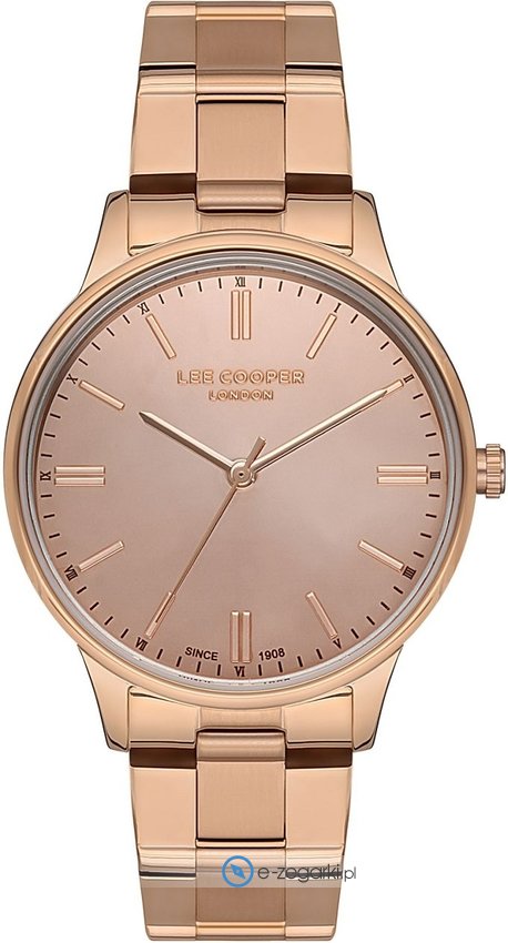 Damski zegarek Lee Cooper LC07126.410 to zegarek, który dzięki swemu wzornictwu zawsze będzie prezentował się dobrze. Ciekawy wygląd zegarka osiągnięto m.in. poprzez tarczę w kolorze różowo złotym. Zegarek ten pokazuje aktualny czas w formacie analogowym dzięki temu odczyt jest bardzo łatwy. Koperta szeroka jest na 34 mm - w kształcie okrągłym.