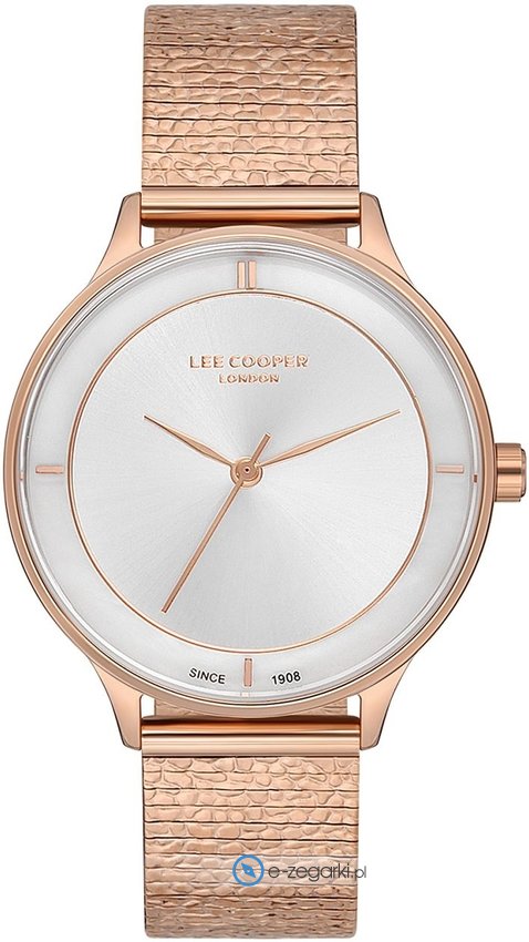 Model LC07132.430 marki Lee Cooper to gustowny zegarek naręczny damski, który jest wyposażony w ciekawe rozwiązania i funkcje. Atrakcyjny wygląd zegarka osiągnięto także dzięki tarczy w kolorze różowo złotym. Zaprezentowana metodą analogową aktualna godzina jest czytelna i szybka do sprawdzenia. Koperta szeroka jest na 36 mm - wyróżnia się okrągłym kształtem.