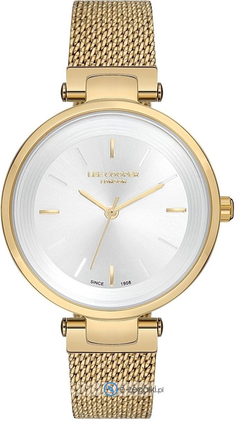 Damski zegarek Lee Cooper LC07141.130 to zegarek, który dzięki swemu wzornictwu zawsze będzie prezentował się dobrze. Niebanalną konstrukcję zegarka osiągnięto z pomocą tarczy w kolorze perłowym. Aktualna godzina przedstawiona jest w sposób analogowy co intuicyjnie pozwala ją odczytać. Koperta została ozdobiona kolorem złotym szeroka jest na 33 mm - w kształcie okrągłym.