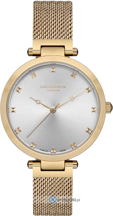 Zegarek damski LC07147.130 marki Lee Cooper to dobra pozycja dla osób ceniących sobie dbałość o detale a także sprawne działanie mechanizmów. Nieschematyczny wygląd zegarka uzyskano również dzięki tarczy w kolorze perłowym. Godzina prezentowana jest w sposób analogowy co niezmiernie łatwo pozwala ją odczytać. Koperta została pokryta kolorem złotym szeroka jest na 36 mm - w kształcie okrągłym.