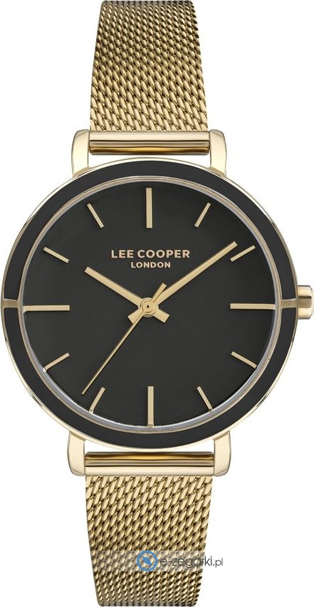 Zegarek damski LC07247.150 marki Lee Cooper to dobre połączenie funkcjonalności i ciekawego designu. Wysokiej trwałości cyferblat zegarka pokryto czarnym kolorem. Aktualna godzina pokazywana jest w sposób analogowy co intuicyjnie pozwala ją odczytać. Koperta w odcieniach koloru złotego szeroka jest na 34 mm - w kształcie okrągłym.