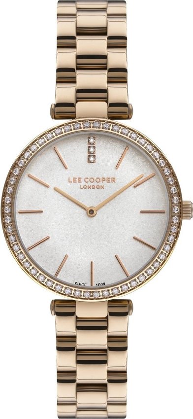 Model LC07295.430 marki Lee Cooper to stylowy zegarek naręczny damski, który jest wyposażony w pomysłowe rozwiązania i funkcje. Niebanalną konstrukcję zegarka osiągnięto z pomocą tarczy w kolorze srebrnym. Zegarek ten pokazuje godzinę w formacie analogowym dzięki temu odczyt jest bardzo łatwy. Koperta jest pokryta kolorem różowo złotym szeroka jest na 34 mm - w kształcie okrągłym.