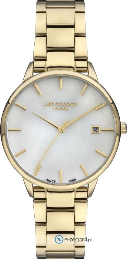Damski zegarek Lee Cooper LC07302.120 to zegarek, który dzięki swemu wzornictwu zawsze będzie prezentował się dobrze. Charakteru nadaje wysokiej klasy tarcza w kolorze białym. Zaprezentowana metodą analogową bieżąca godzina jest czytelna i szybka do sprawdzenia. Koperta jest ozdobiona kolorem złotym szeroka jest na 34 mm - w kształcie okrągłym.