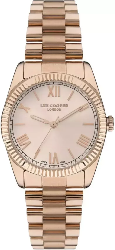 Damski zegarek Lee Cooper LC07331.410 to zegarek, który dzięki swemu wzornictwu zawsze będzie prezentował się dobrze. Charakter zapewnia wysokiej jakości cyferblat w kolorze różowo złotym. Godzina prezentowana jest w sposób analogowy co niezmiernie łatwo pozwala ją odczytać. Koperta jest pokryta kolorem różowo złotym szeroka jest na 34 mm - w kształcie okrągłym.