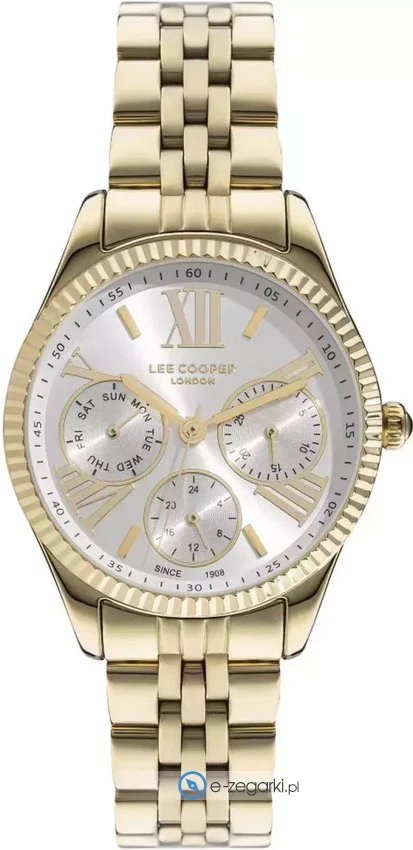 Zegarek damski LC07333.130 marki Lee Cooper to ciekawa propozycja dla ludzi ceniących sobie dbałość o szczegóły a także bezproblemowe zachowanie mechanizmów. Styl zapewnia wysokiej klasy cyferblat w kolorze białym. Zegarek ten pokazuje godzinę w formacie analogowym dzięki temu odczyt jest intuicyjny. Koperta w barwach koloru złotego szeroka jest na 35 mm - w kształcie okrągłym.