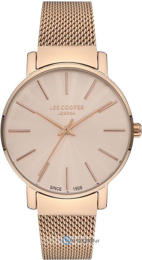 Zegarek damski LC07339.410 marki Lee Cooper to stylowe połączenie funkcjonalności i modnego designu. Charakter zapewnia wysokiej klasy tarcza w kolorze różowo złotym. Zegarek ten prezentuje aktualny czas w formacie analogowym dzięki czemu odczyt jest intuicyjny. Koperta została ozdobiona kolorem różowo złotym szeroka jest na 35 mm - charakteryzuje się okrągłym kształtem.