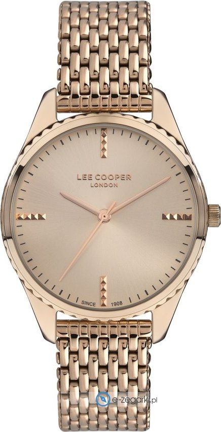 Zegarek damski LC07356.410 marki Lee Cooper to dobre połączenie funkcjonalności oraz modnego designu. Cyferblat zegarka jest w kolorze różowo złotym. Zegarek ten pokazuje aktualny czas w formacie analogowym dzięki temu odczyt jest bardzo łatwy. Koperta jest pokryta kolorem różowo złotym szeroka jest na 36 mm - charakteryzuje się okrągłym kształtem.