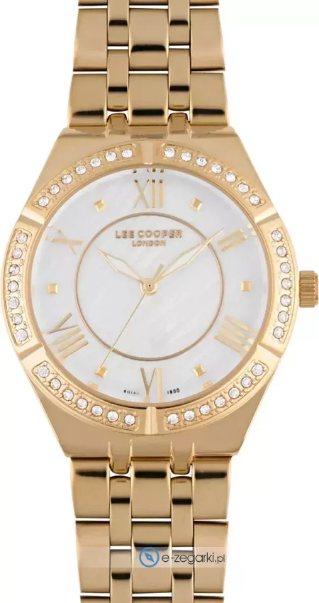 Zegarek damski LC07382.120 marki Lee Cooper to idealna pozycja dla ludzi ceniących sobie dbałość o detale oraz sprawne funkcjonowanie mechanizmów. Niestereotypowy wygląd czasomierza uzyskano m.in. poprzez cyferblat w kolorze białym. Zaprezentowana metodą analogową aktualna godzina jest czytelna i szybka do sprawdzenia. Koperta w odcieniach koloru złotego - w kształcie okrągłym.