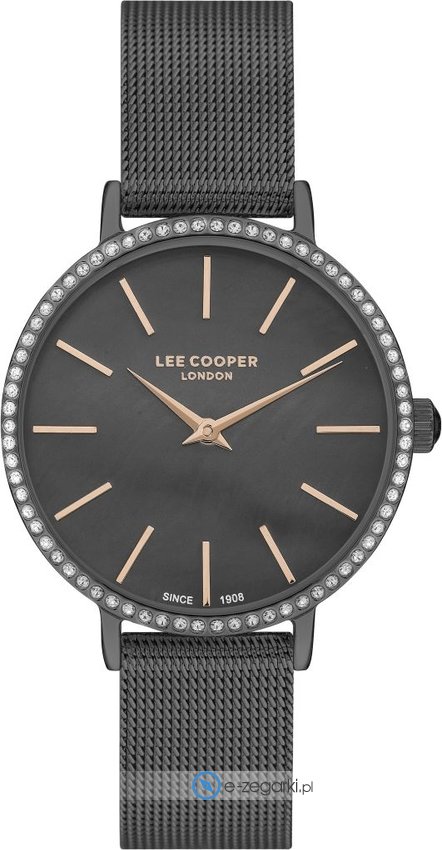 Lee Cooper to marka, która rozpoczęła swoją działalność w Londynie w 1908 roku. Jest najstarszą europejską marką zajmująca się wytwarzaniem używanej na codzień odzieży jeansowej. Dzisiaj brand ten dostępny jest praktycznie na wszystkich kontynentach w ponad 5000 punktach sprzedaży. Do kompletu oprócz odzieży brakowało tylko zegarków, stąd właśnie decyzja o rozszerzeniu asortymentu i produkcji zegarków Lee Cooper. Zegarki Lee Cooper tak jak reszta produktów marki charakteryzuje wysoka jakość wykonania w atrakcyjnej cenie. Zegarki zawsze mają bardzo dobre wykończenie, a także dopracowane w szczegółach detale. Sprzedawane w naszym sklepie zegarki Lee Coooper pochodzą od oficjalnego polskiego dystyrbutora i objęte są dwuletnia. Dzięki temu masz pewność, że zakupiony zegarek zawsze gdy zajdzie taka potrzeba będzie właściwie traktowany w ewentualnym procesie gwarancyjnym lub pogwarancyjnym.