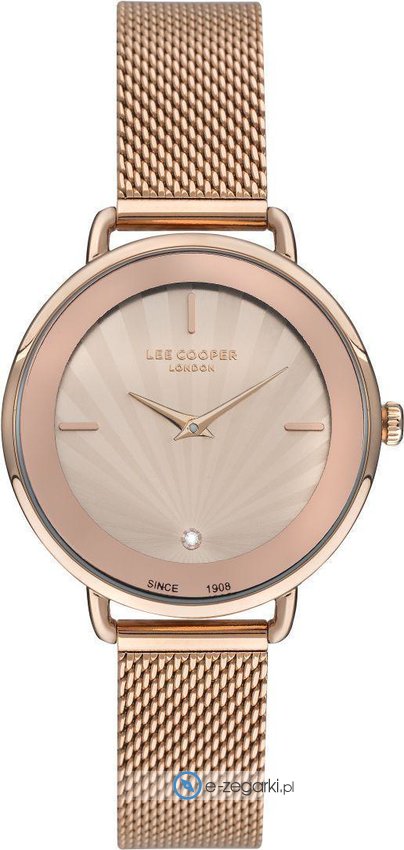 Damski zegarek Lee Cooper LC07400.410 to zegarek, który dzięki swemu wzornictwu zawsze będzie prezentował się dobrze. Niebanalny wygląd zegarka osiągnięto m.in. poprzez tarczę w kolorze różowo złotym. Zegarek ten prezentuje aktualny czas w formacie analogowym dzięki czemu odczyt jest bezproblemowy. Koperta jest w kolorze różowo złotym szeroka jest na 34 mm - w kształcie okrągłym.