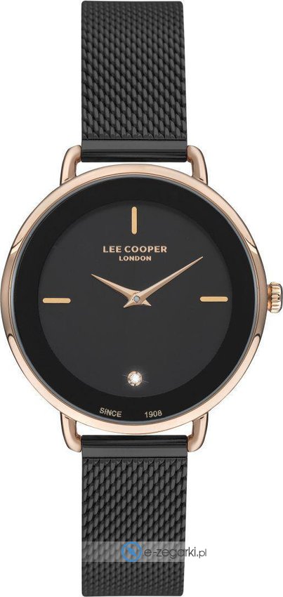 Zegarek damski LC07400.450 marki Lee Cooper to dobre połączenie funkcjonalności a także ciekawego wzornictwa. Wysokiej trwałości tarczę zegarka pokryto czarnym kolorem. Pokazana metodą analogową aktualna godzina jest czytelna i prosta do sprawdzenia. Koperta została ozdobiona kolorem różowo złotym szeroka jest na 34 mm - charakteryzuje się okrągłym kształtem.