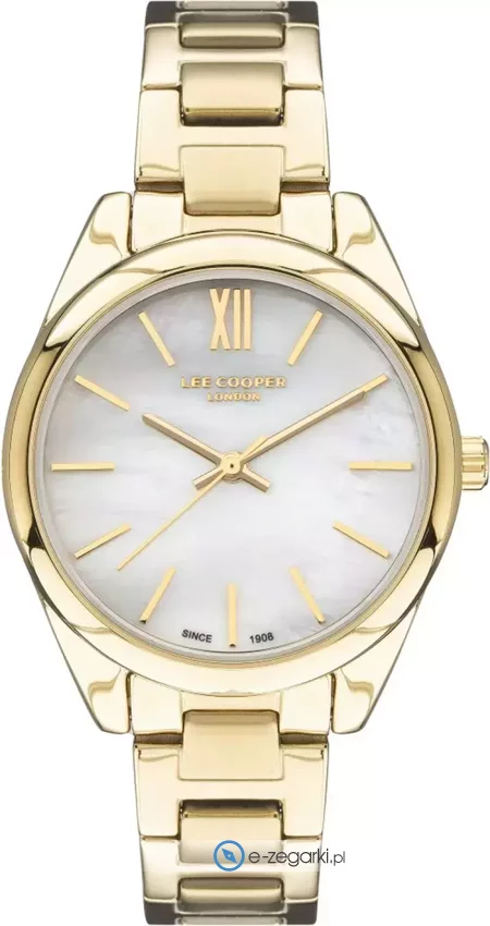 Damski zegarek Lee Cooper LC07450.120 to zegarek, który dzięki swemu wzornictwu zawsze będzie prezentował się dobrze. Styl zapewnia wysokiej jakości cyferblat w kolorze białym. Zegarek ten prezentuje aktualny czas w formacie analogowym dzięki temu odczyt jest bezproblemowy. Koperta jest w kolorze złotym szeroka jest na 35 mm - cechuje się okrągłym kształtem.