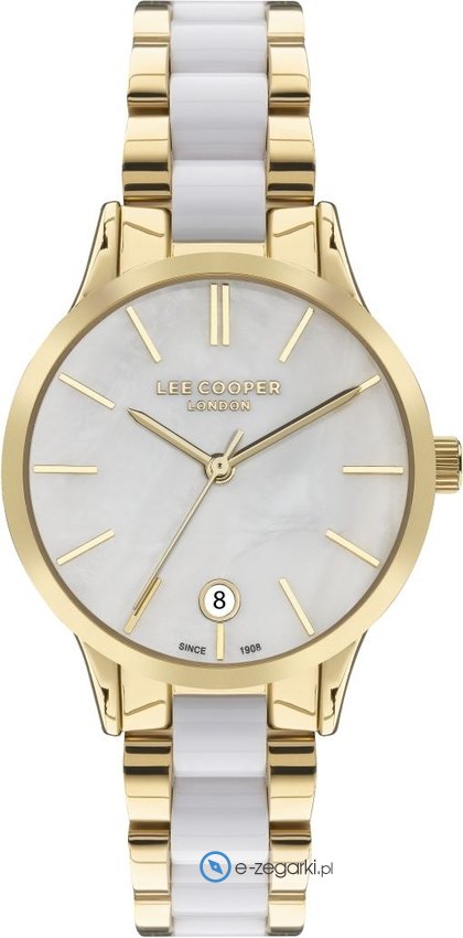 Damski zegarek Lee Cooper LC07458.120 to zegarek, który dzięki swemu wzornictwu zawsze będzie prezentował się dobrze. Styl zapewnia wysokiej jakości tarcza w kolorze białym. Aktualna godzina zaprezentowana jest w sposób analogowy co bez trudu pozwala ją odczytać. Koperta jest w kolorze złotym szeroka jest na 34 mm - ma okrągły kształt.