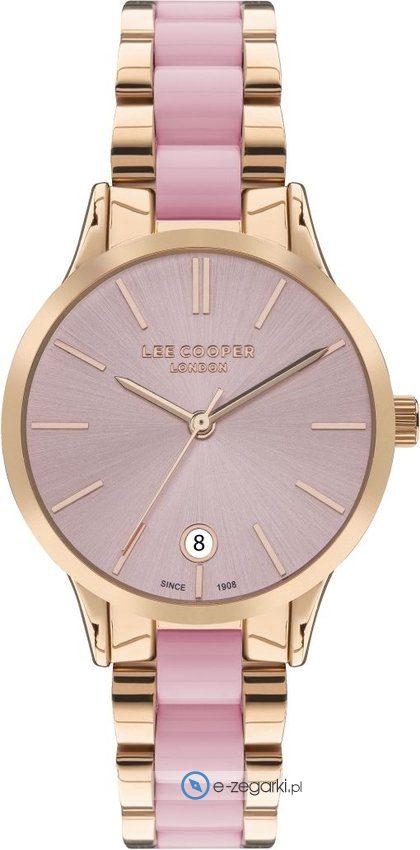 Model LC07458.410 marki Lee Cooper to stylowy zegarek naręczny damski, który wyposażono w ciekawe rozwiązania i funkcje. Ciekawą budowę czasomierza osiągnięto z pomocą tarczy w kolorze różowo złotym. Zegarek ten pokazuje godzinę w formacie analogowym dzięki temu odczyt jest bezproblemowy. Koperta w odcieniach koloru różowo złotego szeroka jest na 34 mm - w kształcie okrągłym.