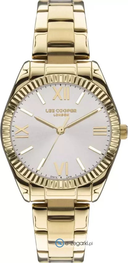 Zegarek damski LC07459.130 marki Lee Cooper to idealne połączenie funkcjonalności oraz ciekawego wzornictwa. Cyferblat zegarka jest w kolorze srebrnym. Godzina zaprezentowana jest w sposób analogowy co bez trudu pozwala ją odczytać. Koperta została ozdobiona kolorem złotym szeroka jest na 32 mm - ma okrągły kształt.