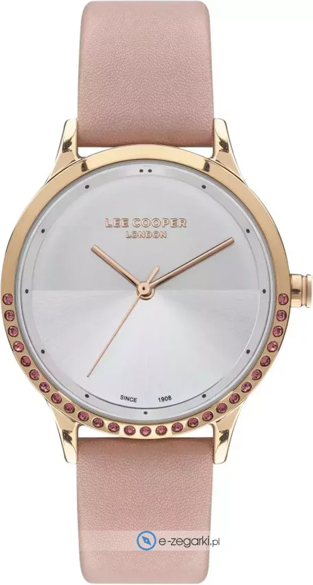 Zegarek damski LC07464.437 marki Lee Cooper to ciekawa pozycja dla osób ceniących sobie dbałość o detale oraz bezawaryjne zachowanie mechanizmów. Atrakcyjny wygląd czasomierza osiągnięto m.in. poprzez tarczę w kolorze srebrnym. Pokazana metodą analogową bieżąca godzina jest czytelna i prosta do odczytania. Koperta została ozdobiona kolorem różowo złotym szeroka jest na 34 mm - ma okrągły kształt.