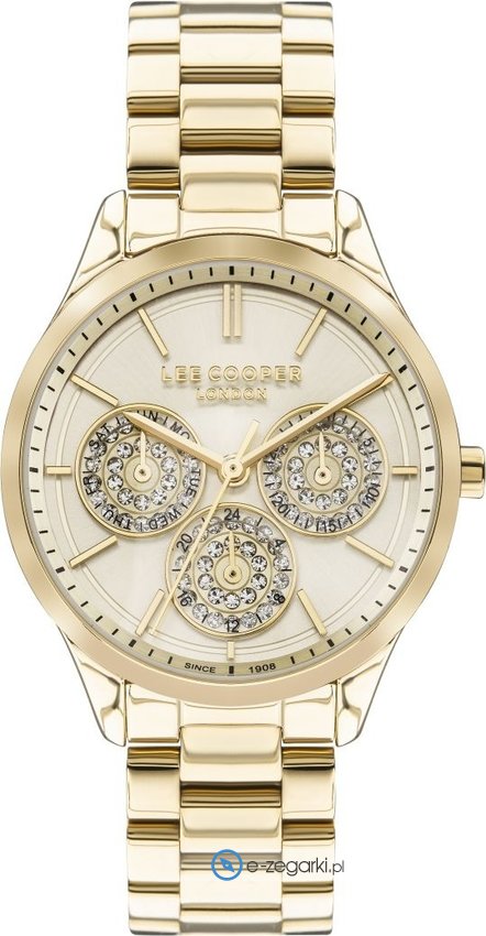Damski zegarek Lee Cooper LC07471.130 to zegarek, który dzięki swemu wzornictwu zawsze będzie prezentował się dobrze. Charakteru nadaje wysokiej klasy cyferblat w kolorze białym. Pokazana metodą analogową aktualna godzina jest czytelna i szybka do odczytania. Koperta jest ozdobiona kolorem złotym szeroka jest na 35 mm - w kształcie okrągłym.