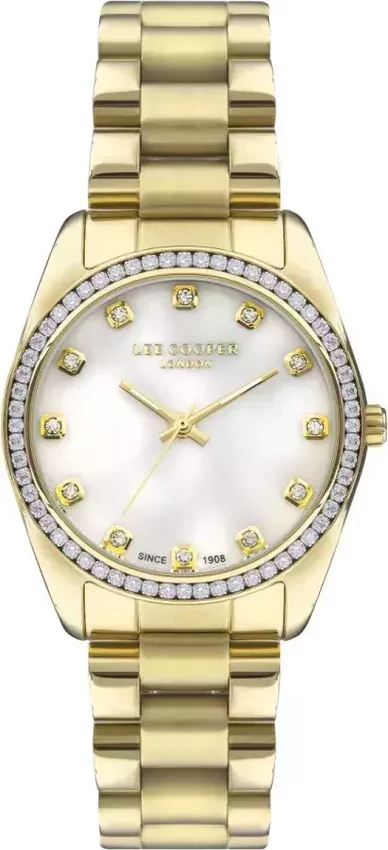 Zegarek damski LC07478.120 marki Lee Cooper to dobre połączenie funkcjonalności i modnego wzornictwa. Wysokiej trwałości cyferblat zegarka ozdobiono perłowym kolorem. Zaprezentowana metodą analogową bieżąca godzina jest czytelna i łatwa do sprawdzenia. Koperta została ozdobiona kolorem złotym szeroka jest na 34 mm - charakteryzuje się okrągłym kształtem.