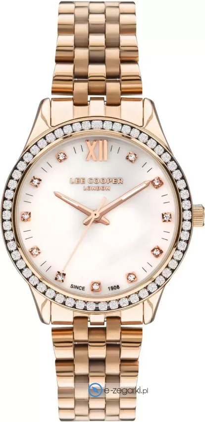 Zegarek damski LC07483.420 marki Lee Cooper to dobra pozycja dla ludzi ceniących sobie dbałość o szczegóły jak również bezproblemowe zachowanie mechanizmów. Atrakcyjny wygląd czasomierza uzyskano m.in. poprzez tarczę w kolorze białym. Godzina prezentowana jest w sposób analogowy co intuicyjnie pozwala ją odczytać. Koperta jest w kolorze różowo złotym szeroka jest na 35 mm - charakteryzuje się okrągłym kształtem.