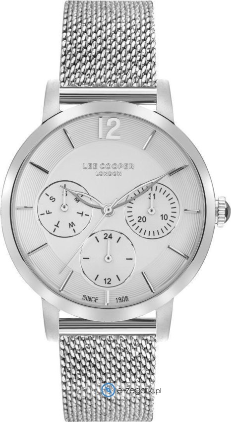 Zegarek damski LC07552.330 marki Lee Cooper to idealna pozycja dla ludzi ceniących sobie dbałość o detale oraz bezproblemowe zachowanie mechanizmów. Charakteru nadaje wysokiej klasy cyferblat w kolorze srebrnym. Pokazana metodą analogową bieżąca godzina jest czytelna i prosta do sprawdzenia. Koperta jest ozdobiona kolorem srebrnym szeroka jest na 36 mm - ma okrągły kształt.