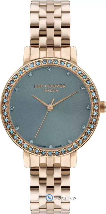 Zegarek damski LC07590.490 marki Lee Cooper to idealne połączenie funkcjonalności a także ciekawego wzornictwa. Niestereotypowy wygląd zegarka uzyskano także dzięki tarczy w kolorze niebieskim. Zegarek ten pokazuje godzinę w formacie analogowym dzięki temu odczyt jest intuicyjny. Koperta została ozdobiona kolorem różowo złotym szeroka jest na 34 mm - cechuje się okrągłym kształtem.