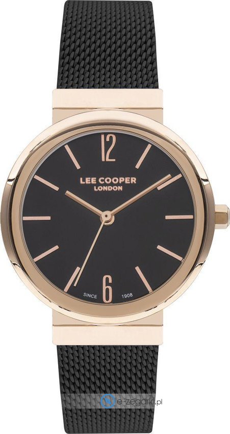 Zegarek damski LC07623.450 marki Lee Cooper to idealna pozycja dla ludzi ceniących sobie dbałość o szczegóły jak również bezawaryjne działanie mechanizmów. Niebanalną stylistykę czasomierza uzyskano dzięki tarczy w kolorze czarnym. Zegarek ten pokazuje aktualny czas w formacie analogowym dzięki temu odczyt jest intuicyjny. Koperta w barwach koloru różowo złotego szeroka jest na 34 mm - posiada okrągły kształt.
