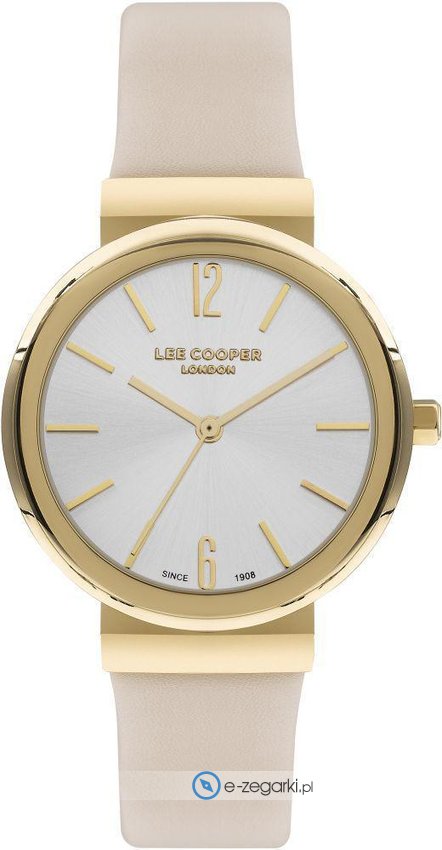 Zegarek damski LC07624.134 marki Lee Cooper to stylowe połączenie funkcjonalności a także modnego wzornictwa. Tarcza zegarka jest w kolorze srebrnym. Zaprezentowana metodą analogową aktualna godzina jest czytelna i łatwa do sprawdzenia. Koperta jest w kolorze złotym szeroka jest na 34 mm - ma okrągły kształt.