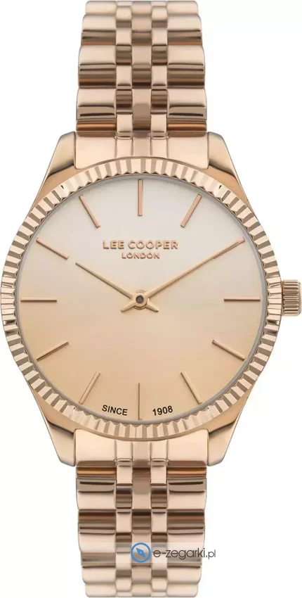 Zegarek damski LC07682.430 marki Lee Cooper to idealna pozycja dla osób ceniących sobie dbałość o szczegóły oraz sprawne zachowanie mechanizmów. Charakteru nadaje wysokiej klasy tarcza w kolorze różowo złotym. Zaprezentowana metodą analogową aktualna godzina jest czytelna i prosta do odczytania. Koperta w odcieniach koloru różowo złotego szeroka jest na 35 mm - charakteryzuje się okrągłym kształtem.