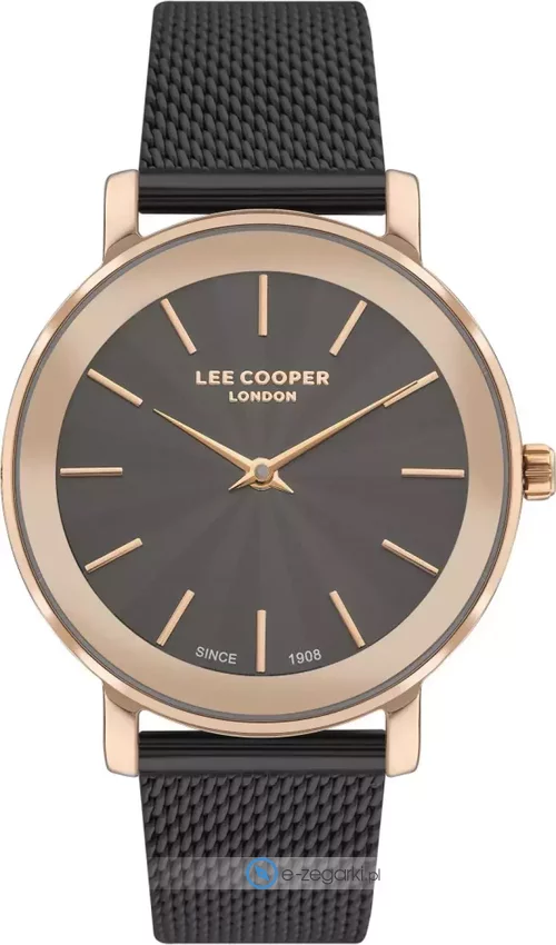 Zegarek damski LC07687.460 marki Lee Cooper to stylowe połączenie funkcjonalności i ciekawego designu. Stylu dodaje wysokiej jakości tarcza w kolorze grafitowym. Zegarek ten prezentuje aktualny czas w formacie analogowym dzięki czemu odczyt jest bezproblemowy. Koperta jest w kolorze różowo złotym szeroka jest na 34 mm - posiada okrągły kształt.