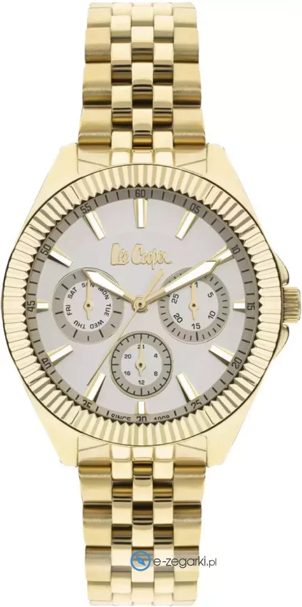 Damski zegarek Lee Cooper LC07837.130 to zegarek, który dzięki swemu wzornictwu zawsze będzie prezentował się dobrze. Charakterystyczny wygląd czasomierza osiągnięto również dzięki tarczy w kolorze srebrnym. Aktualna godzina zaprezentowana jest w sposób analogowy co niezmiernie łatwo pozwala ją odczytać. Koperta jest w kolorze złotym szeroka jest na 36 mm - w kształcie okrągłym.