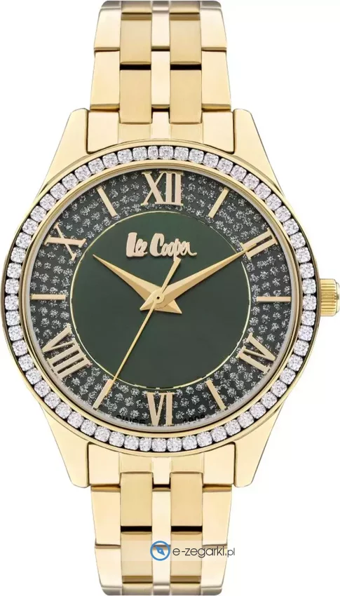 Zegarek damski LC07928.170 marki Lee Cooper to stylowe połączenie funkcjonalności i modnego wzornictwa. Charakterystyczną stylistykę zegarka uzyskano dzięki tarczy w kolorze zielonym. Aktualna godzina przedstawiona jest w sposób analogowy co bez trudu pozwala ją odczytać. Koperta w odcieniach koloru złotego szeroka jest na 34 mm - w kształcie okrągłym.