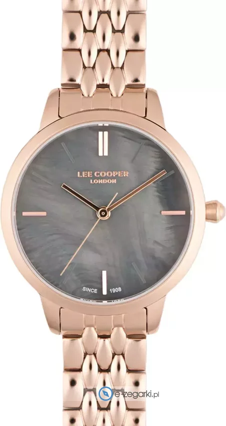 Lee Cooper to marka, która rozpoczęła swoją działalność w Londynie w 1908 roku. Jest najstarszą europejską marką zajmująca się wytwarzaniem popularnej odzieży jeansowej. Obecnie brand ten można zobaczyć na wszystkich kontynentach w przeszło 5000 punktach sprzedaży. Aby być kompletną marką modową oczywiście nie mogło zabrankąć zegarków, stąd właśnie decyzja o powiększeniu asortymentu i produkcji zegarków Lee Cooper. Zegarki Lee Cooper podobnie jak reszta produktów marki oferują niezwykle wysoką jakość wykonania w atrakcyjnej cenie. Zegarki zawsze mają bardzo dobre wykończenie, a także dopracowane w szczegółach detale. Sprzedawane w naszym sklepie zegarki Lee Coooper pochodzą od oficjalnego polskiego dystyrbutora i objęte są dwuletnia. Dzięki temu masz pewność, że zakupiony czasomierz zawsze gdy zajdzie taka potrzeba będzie odpowiednio traktowany w ewentualnym procesie gwarancyjnym lub pogwarancyjnym.