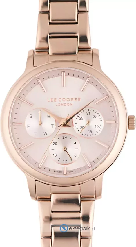 Damski zegarek Lee Cooper LC07946.480 to zegarek, który dzięki swemu wzornictwu zawsze będzie prezentował się dobrze. Tarcza zegarka jest w kolorze różowym. Godzina przedstawiona jest w sposób analogowy co intuicyjnie pozwala ją odczytać. Koperta jest w kolorze różowo złotym szeroka jest na 35 mm - w kształcie okrągłym.