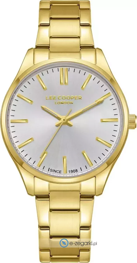 Zegarek damski LC08011.130 marki Lee Cooper to idealna propozycja dla ludzi ceniących sobie dbałość o szczegóły jak również bezawaryjne działanie mechanizmów. Cyferblat zegarka jest w kolorze srebrnym. Zegarek ten prezentuje aktualny czas w formacie analogowym dzięki czemu odczyt jest bezproblemowy. Koperta jest w kolorze złotym szeroka jest na 34 mm - posiada okrągły kształt.