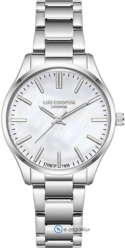 Zegarek damski LC08011.320 marki Lee Cooper to idealna propozycja dla ludzi ceniących sobie dbałość o detale a także sprawne zachowanie mechanizmów. Cyferblat zegarka jest w kolorze perłowym. Pokazana metodą analogową bieżąca godzina jest czytelna i szybka do sprawdzenia. Koperta w odcieniach koloru srebrnego szeroka jest na 34 mm - charakteryzuje się okrągłym kształtem.