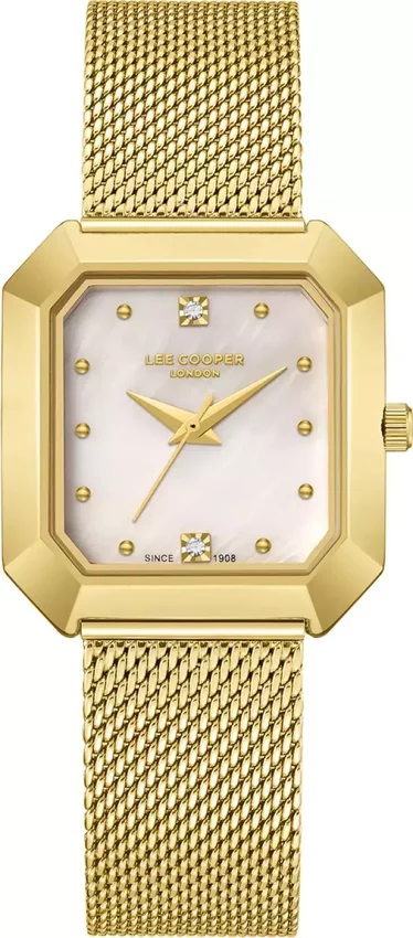 Model LC08027.120 marki Lee Cooper to gustowny zegarek naręczny damski, który jest wyposażony w ciekawe rozwiązania oraz funkcje. Charakteru nadaje wysokiej klasy tarcza w kolorze białym. Zegarek ten pokazuje aktualny czas w formacie analogowym dzięki temu odczyt jest bezproblemowy. Koperta jest ozdobiona kolorem złotym.