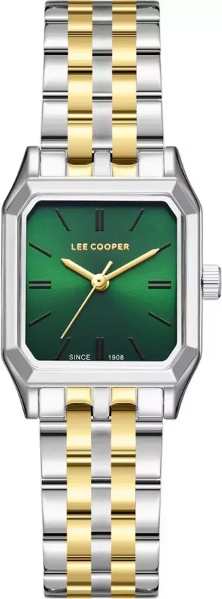 Model LC08120.270 marki Lee Cooper to elegancki zegarek naręczny damski, który posiada ciekawe rozwiązania oraz funkcje. Charakterystyczny wygląd zegarka osiągnięto również dzięki tarczy w kolorze zielonym. Zegarek ten prezentuje godzinę w formacie analogowym dzięki czemu odczyt jest bezproblemowy. Koperta jest w kolorze srebrnym szeroka jest na 23 mm - w kształcie prostokątnym.