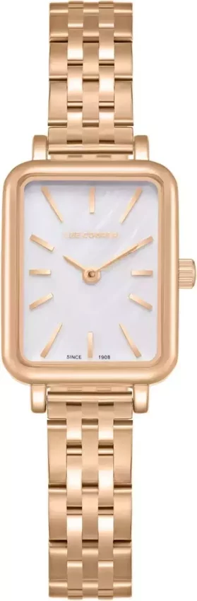 Model LC08121.420 posiada mechanizm zasilany standardową baterią kwarcową. Odporna na korozję oraz działanie czynników atmosferycznych bransoleta koloru różowo złotego zapewnia wysoką jakość i trwałość.