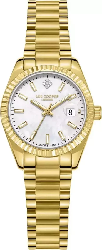 Damski zegarek Lee Cooper LC08126.120 to zegarek, który dzięki swemu wzornictwu zawsze będzie prezentował się dobrze. Cyferblat zegarka jest w kolorze srebrnym. Zegarek ten prezentuje aktualny czas w formacie analogowym dzięki temu odczyt jest bardzo łatwy. Koperta w odcieniach koloru złotego szeroka jest na 28 mm - posiada okrągły kształt.
