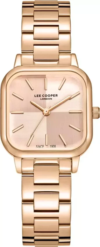 Damski zegarek Lee Cooper LC08134.410 to zegarek, który dzięki swemu wzornictwu zawsze będzie prezentował się dobrze. Atrakcyjną budowę zegarka uzyskano z pomocą tarczy w kolorze różowo złotym. Pokazana metodą analogową aktualna godzina jest czytelna i łatwa do sprawdzenia. Koperta została pokryta kolorem różowo złotym szeroka jest na 27 mm.